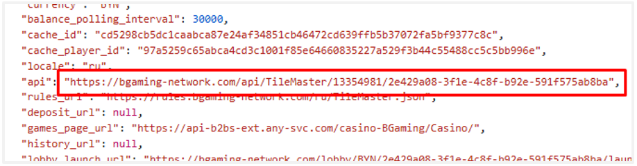 Оригинальная ссылка: bgaming-network.com/api/TileMaster